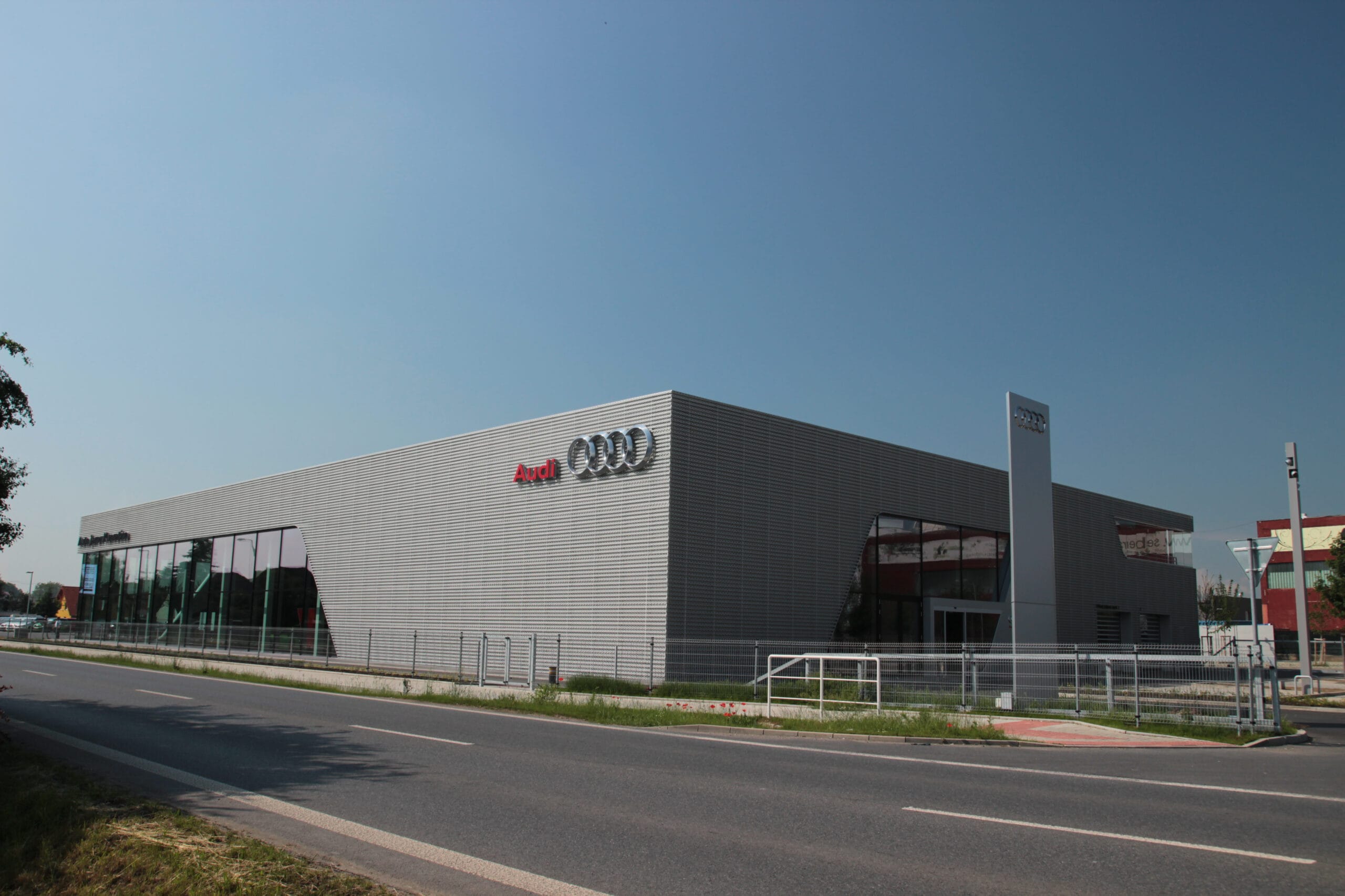 Jednalo se o výrobu a montáž ocelové konstrukce autosalonu Audi a ocelové konstrukce nájezdové rampy na střechu autosalonu.