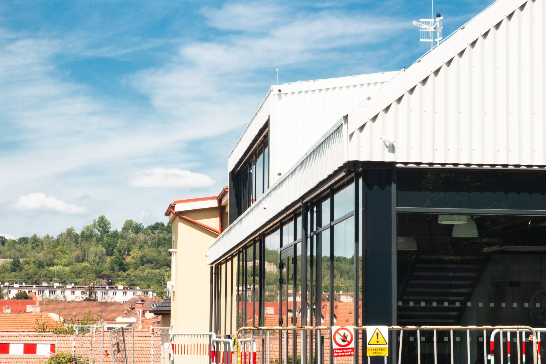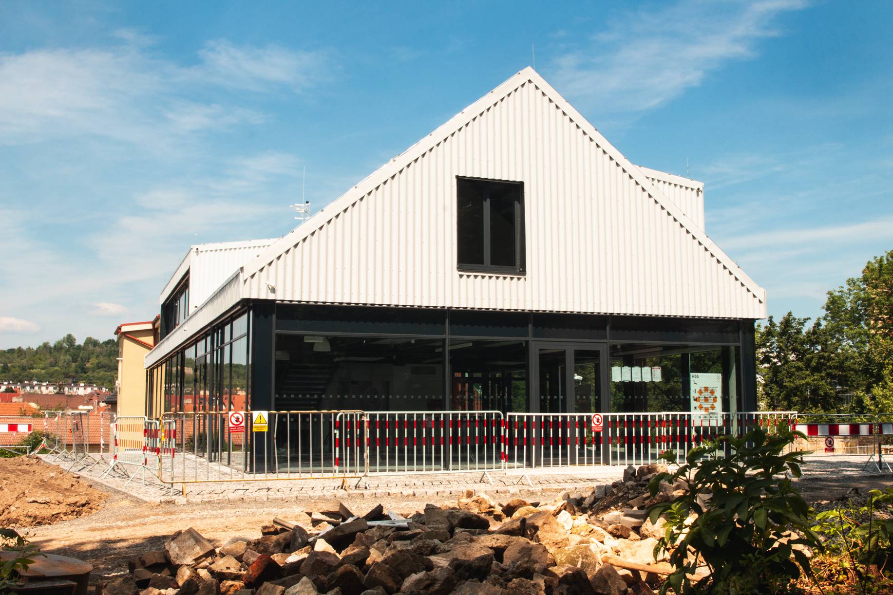 Výstavba nové budovy komunitního centra na Praze 9. Naše firma zde realizovala nosnou ocelovou konstrukci celého objektu včetně zámečnických výrobků – zejména zábradlí.