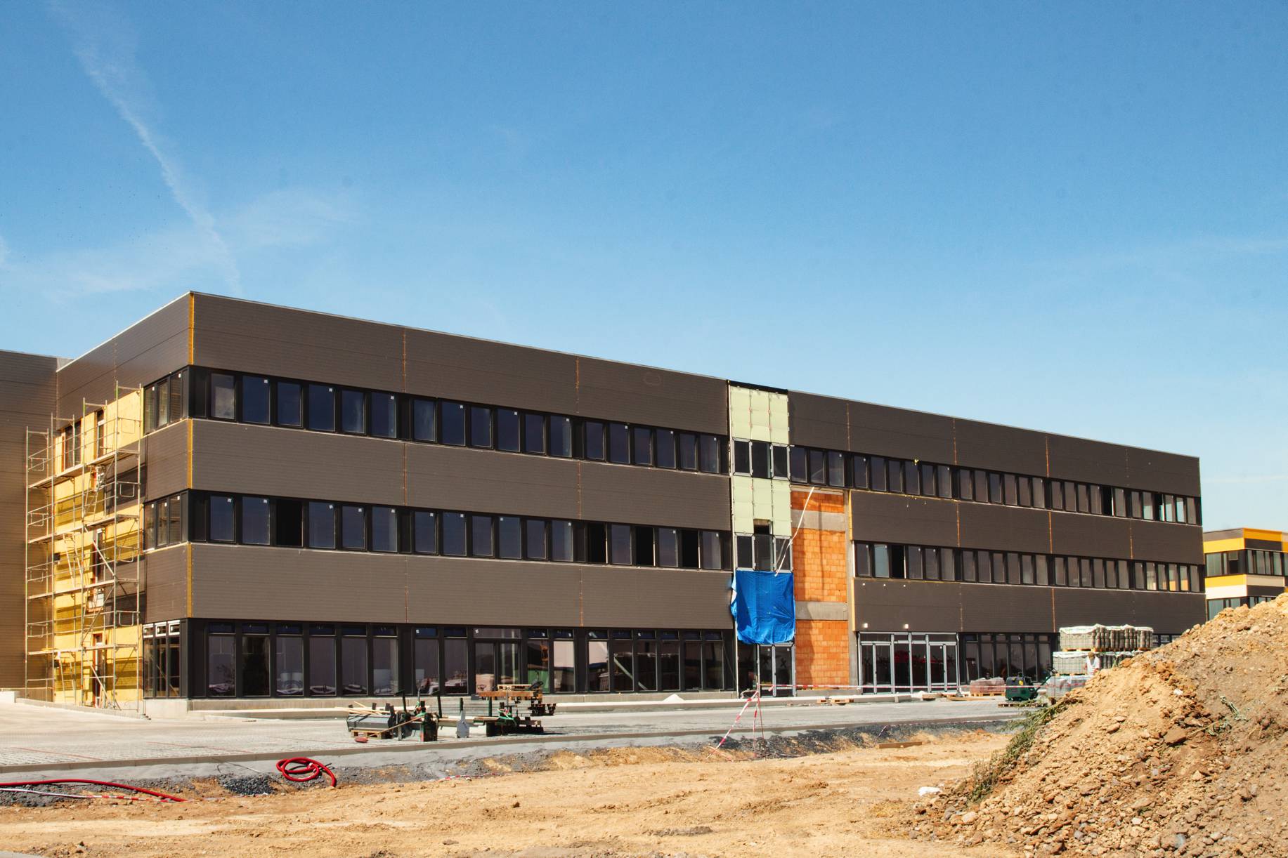 Na novostavbě haly Nepoint park naše firma dodával konstrukce pro opláštění a výměny pro okna a vrata. Celá konstrukce je dodávaná ve vrchním bílém nátěru.
