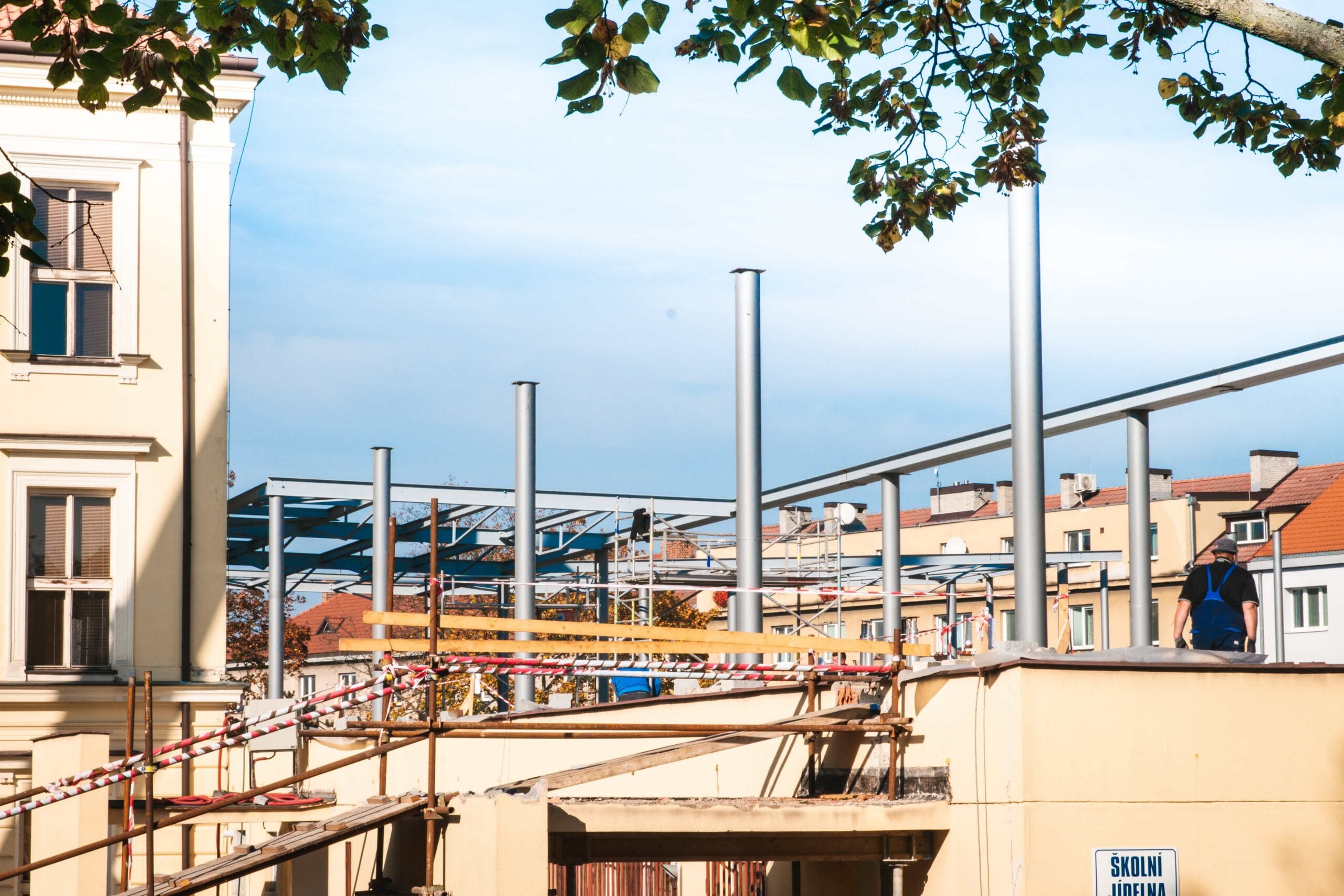 Nástavba školní jídelny základní školy Palachova v Brandýse nad Labem je navržena jako částečně svařovaná a šroubovaná ocelová konstrukce. Jako nosný prvek střešní skladby slouží trapézový plech. Práce probíhaly za plného provozu jídelny. Po dokončení budou v nových prostorách interaktivní učebny.